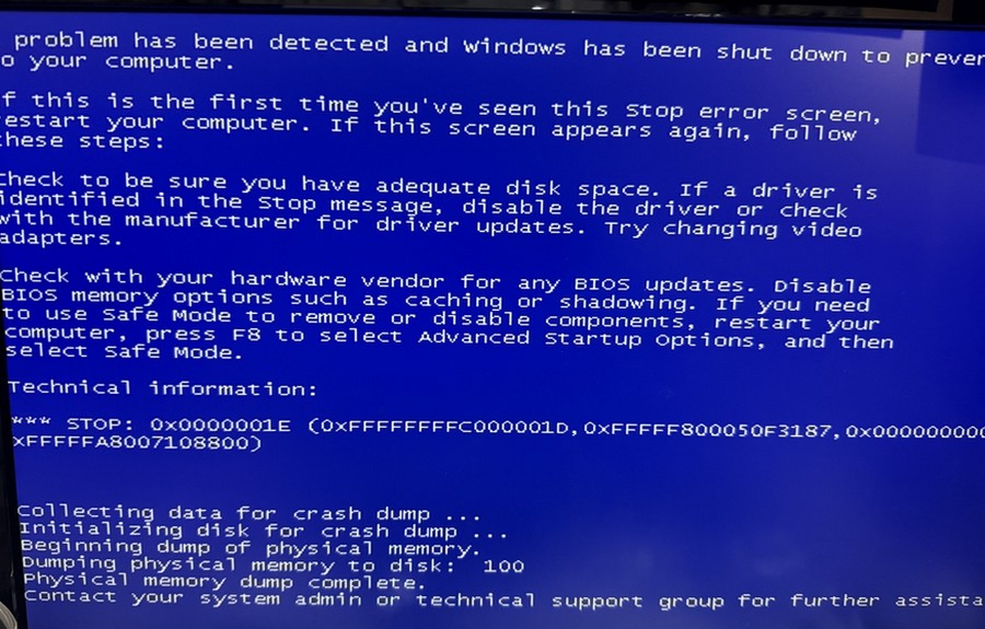 * STOP: 0x0000001E (0XFFFFFFFFC000001D, 0xFFFFF800050F3187, 0x000000000