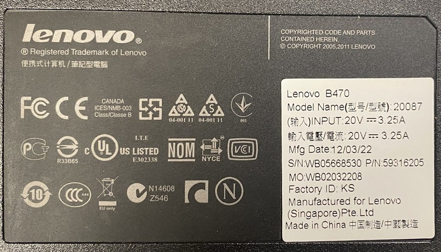 2.Lenovo B470, 20087 手提電腦型號展示;