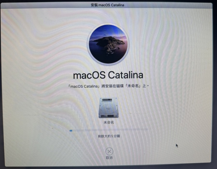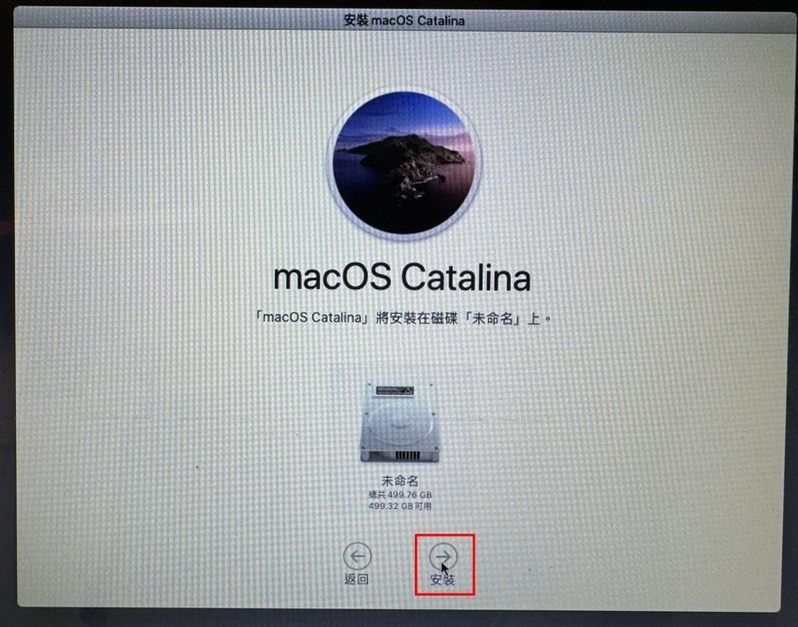 20.macOS Catalina 將安裝在磁碟 未命名 上,點擊安裝;